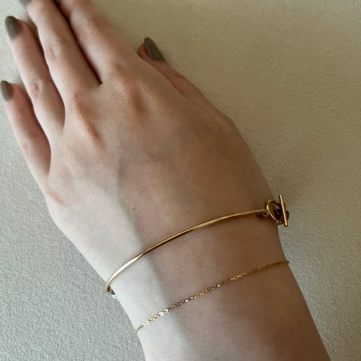 シンプルながら存在感のあるため、どんなスタイルにも合わせやすく、重ね付けにもぴったりです。