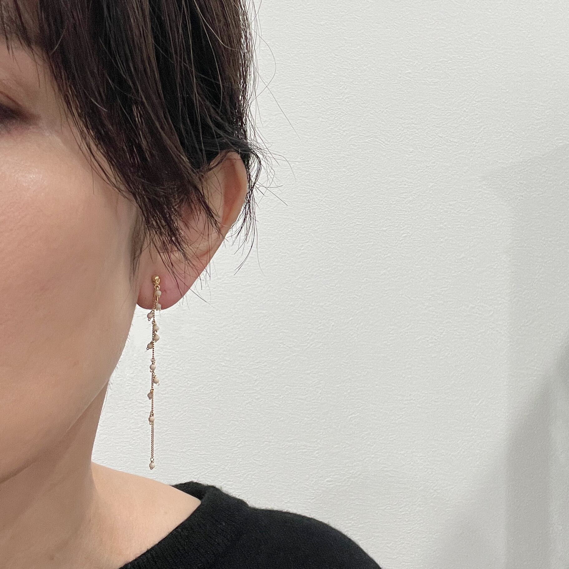 イヤリング金具は軽やかな着け心地のネジバネ式です。