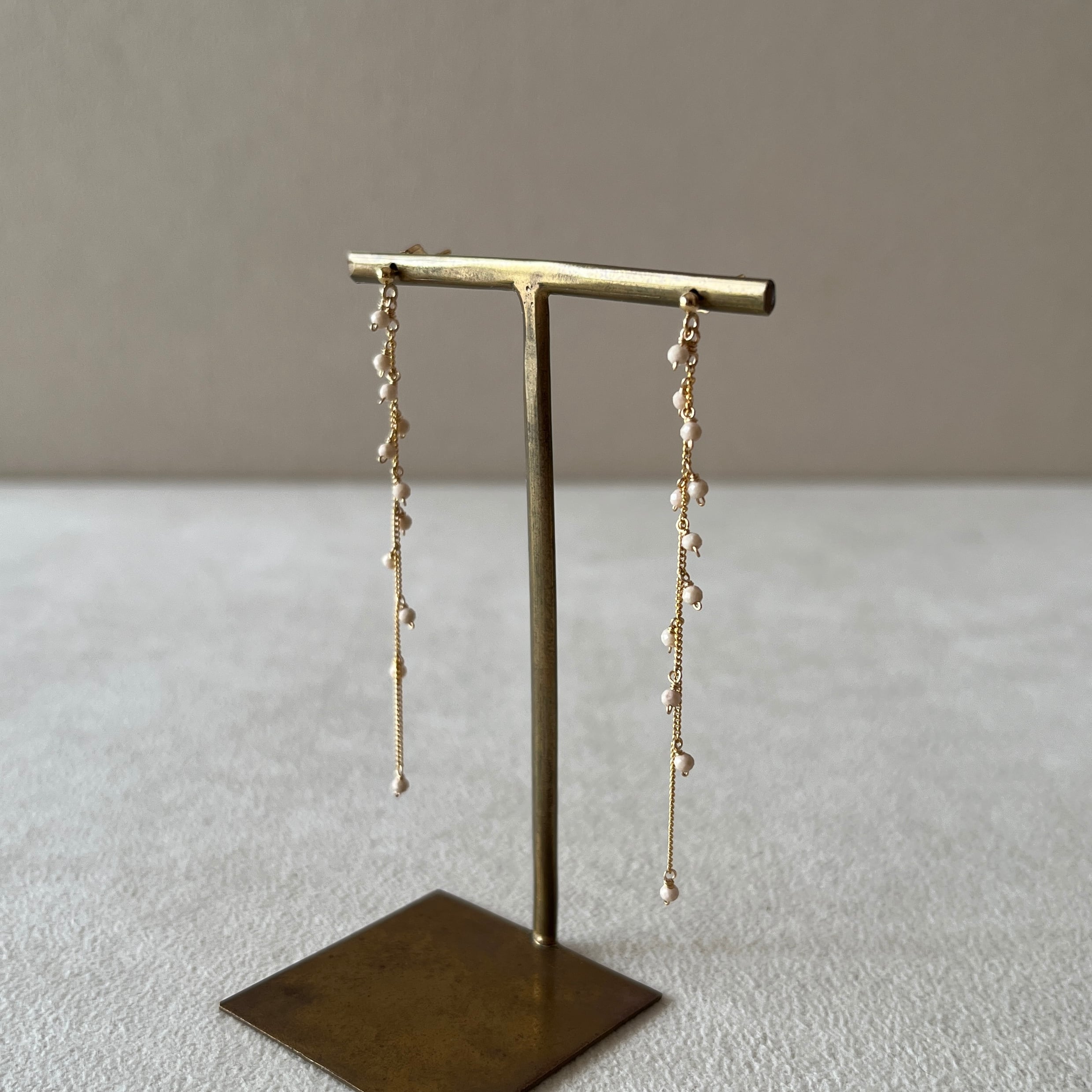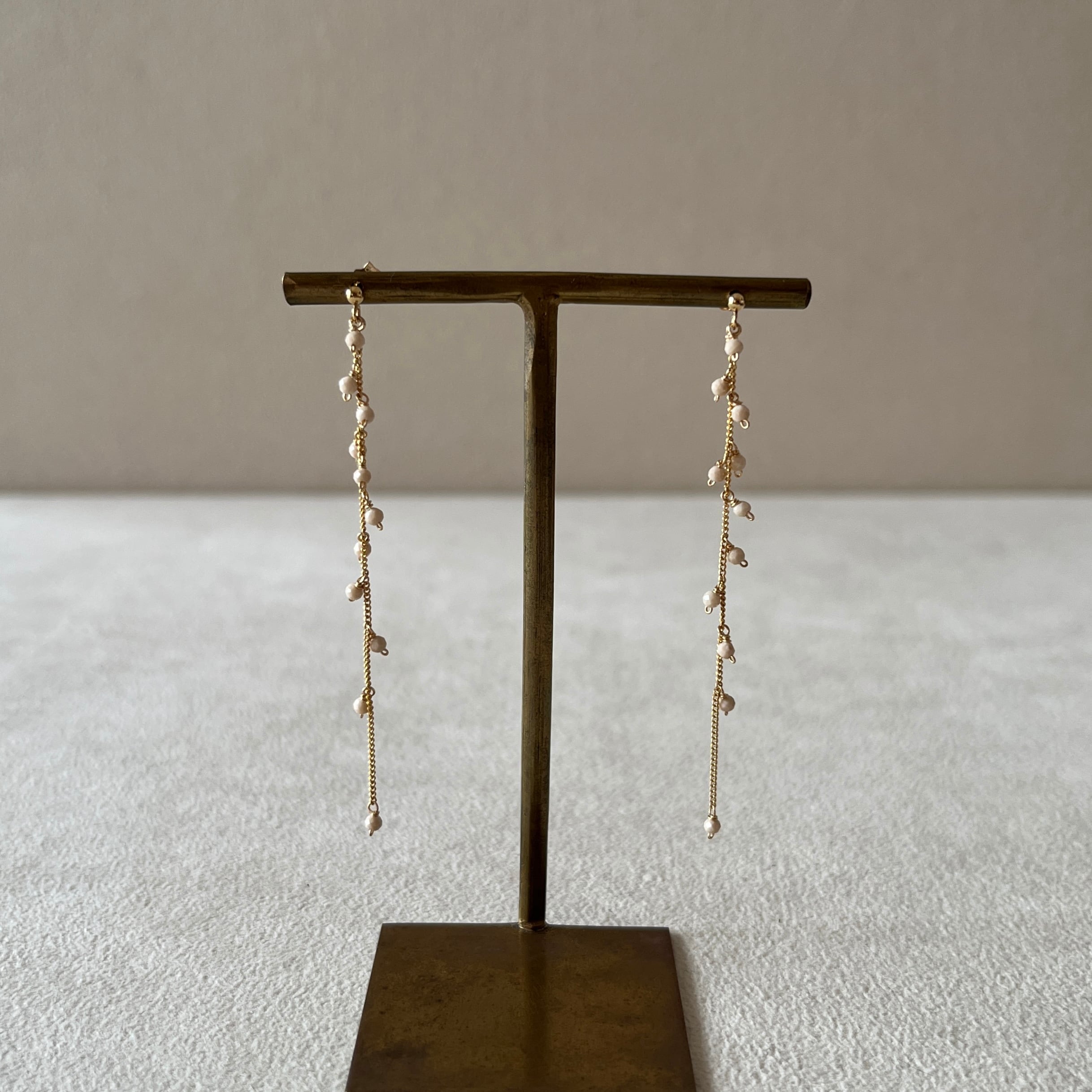 つぶつぶのリバーストーンがキラキラと輝き、揺れるたびに耳元で華やかなアクセントを加えます。