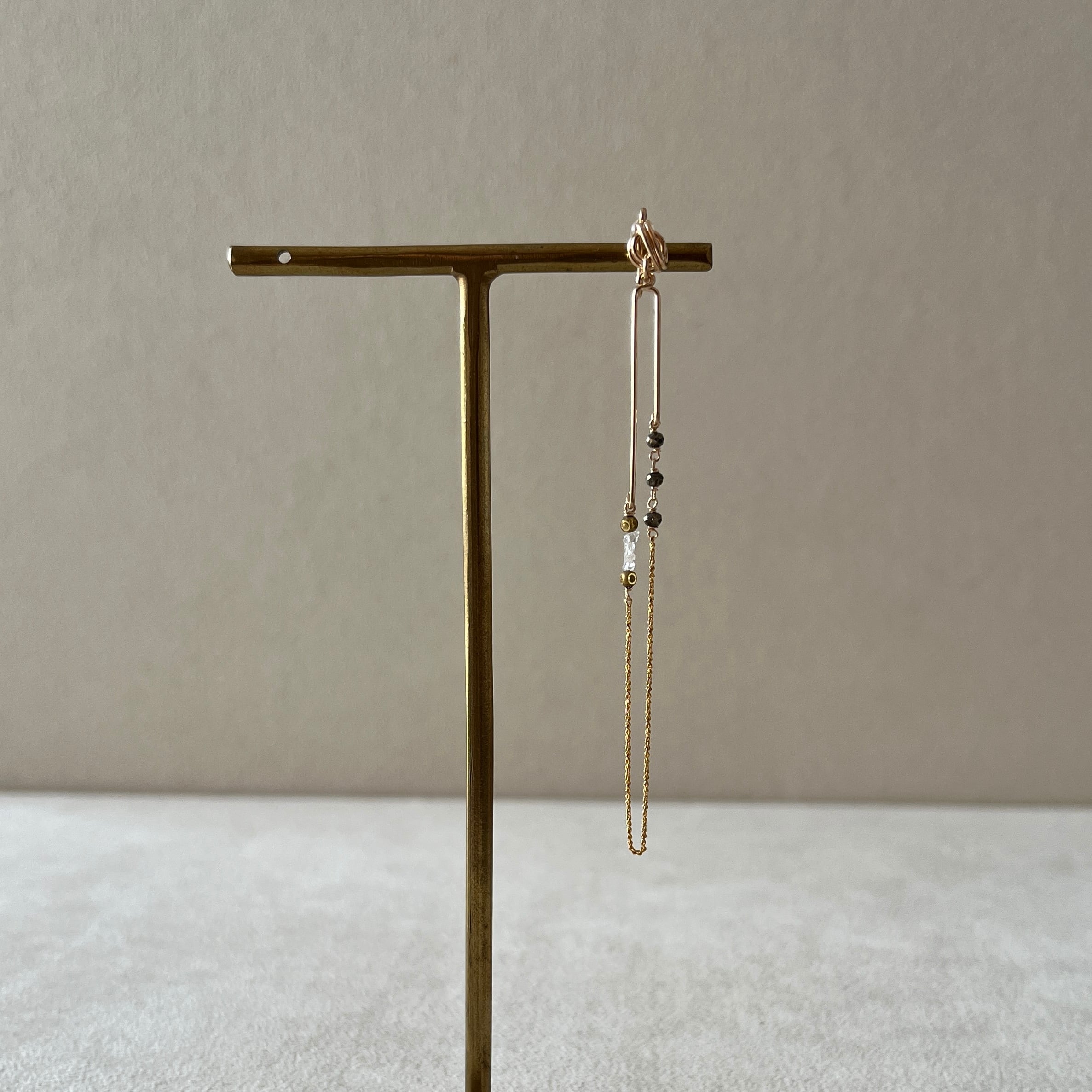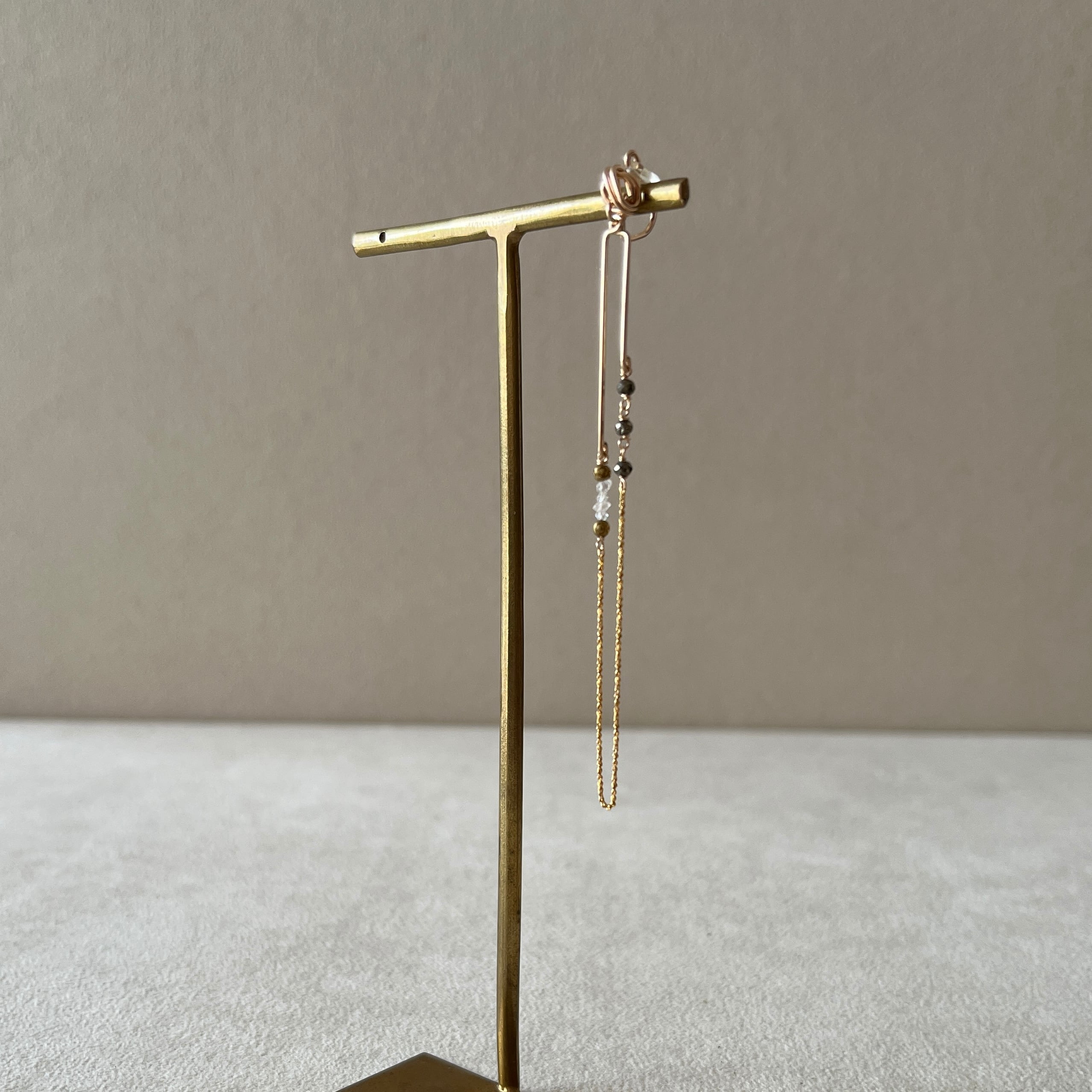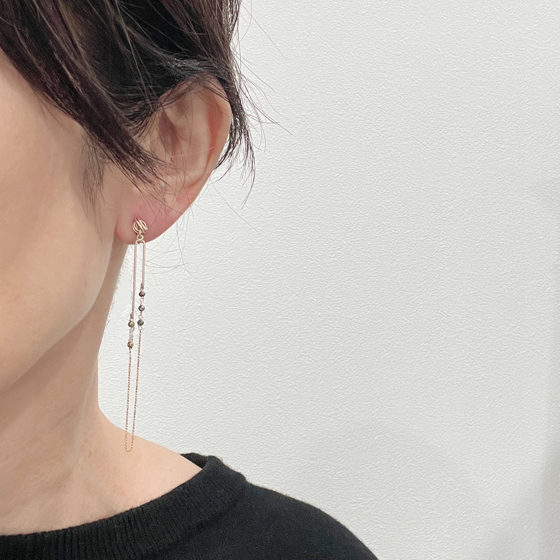 つぶつぶのパイライトがキラキラと輝き、耳元で華やかなアクセントを加えます。