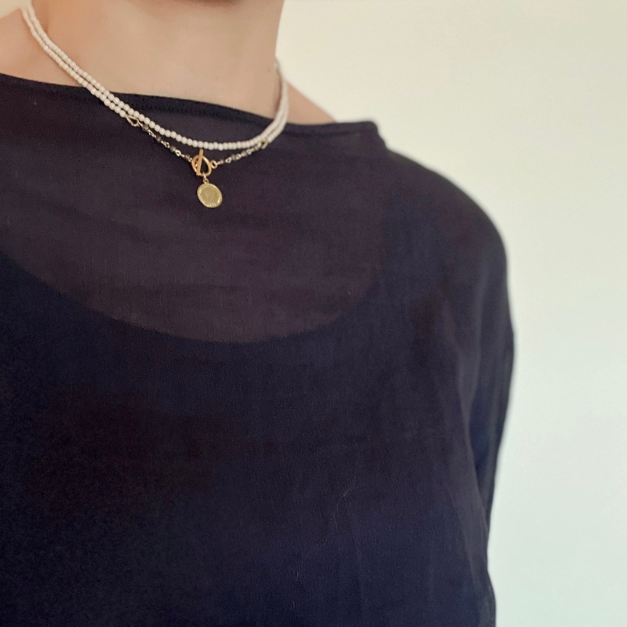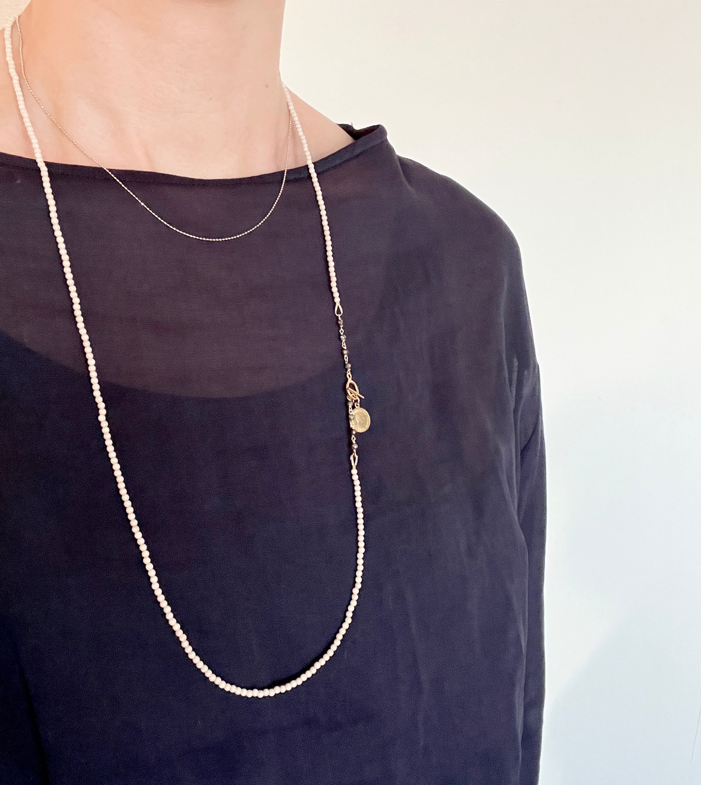 留め具をずらすとラリエットとしてもお使いいただけます。