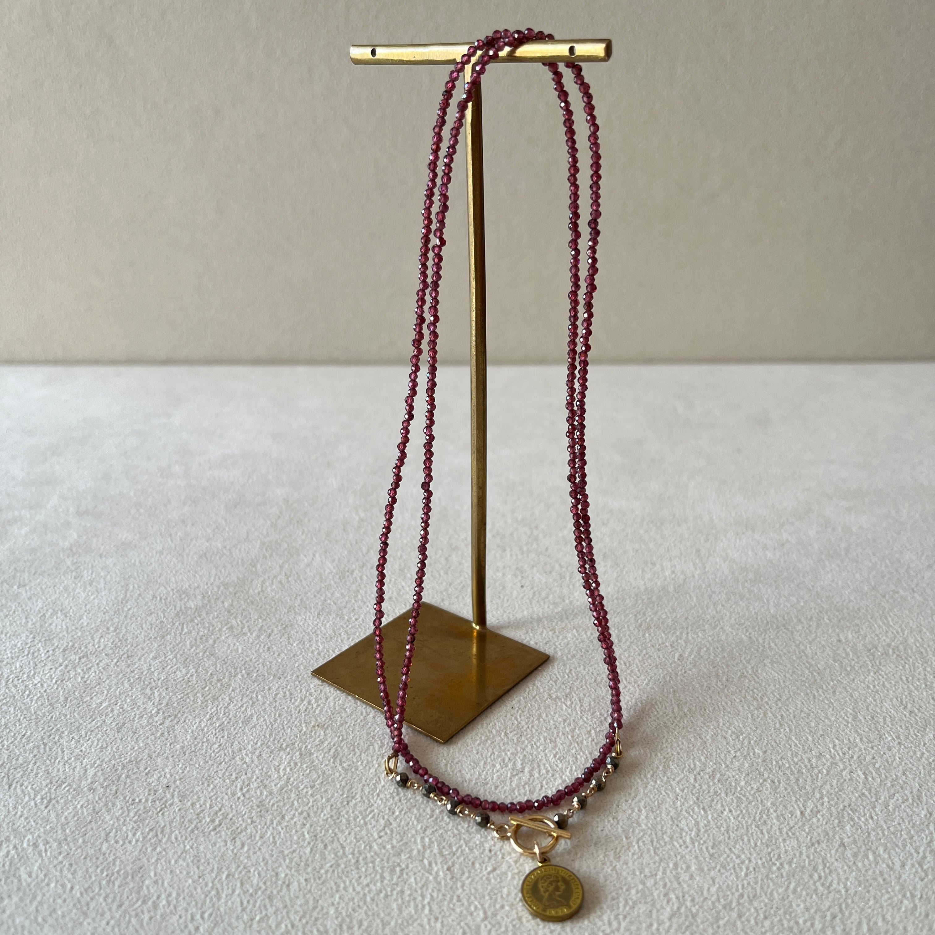 ワインカラーのカットの美しいガーネットを使って制作しました。