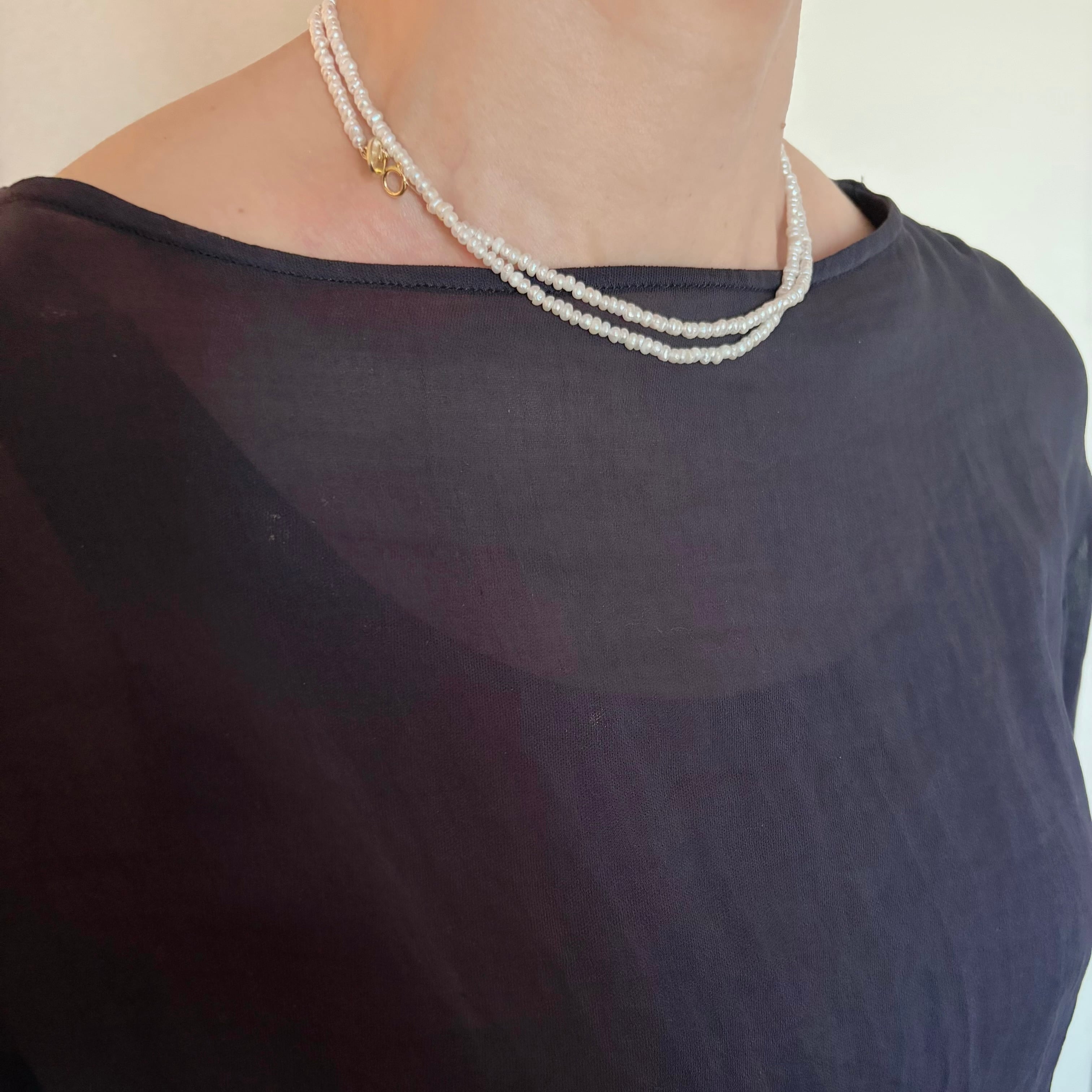 不揃いなパールが醸し出すカジュアルな印象は、様々なシーンに溶け込みます。