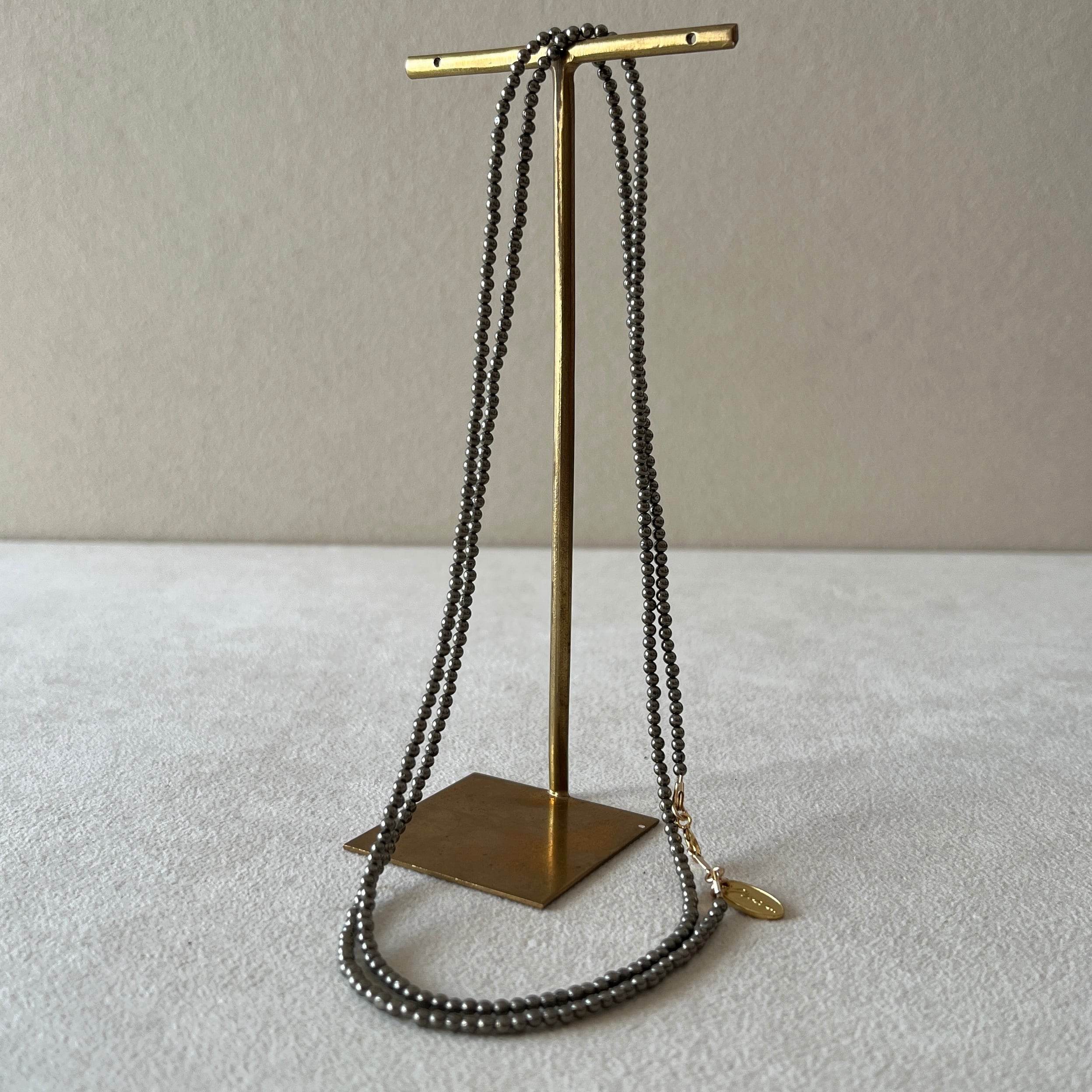 グレーのパイライトは、そのシックな色合いがカジュアルなコーディネートにぴったりです。日常使いはもちろん、特別なシーンでもさりげなく華を添えてくれます。