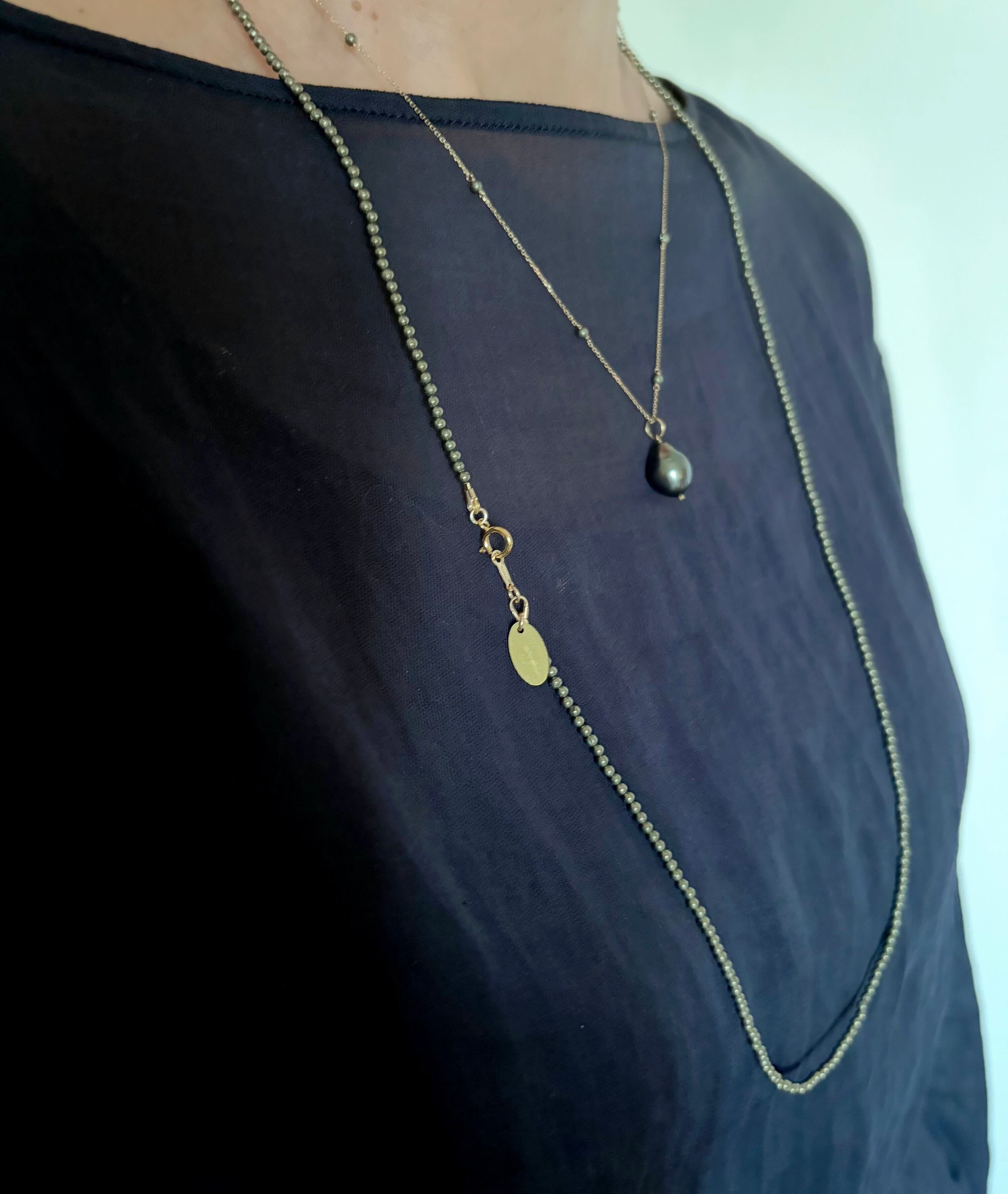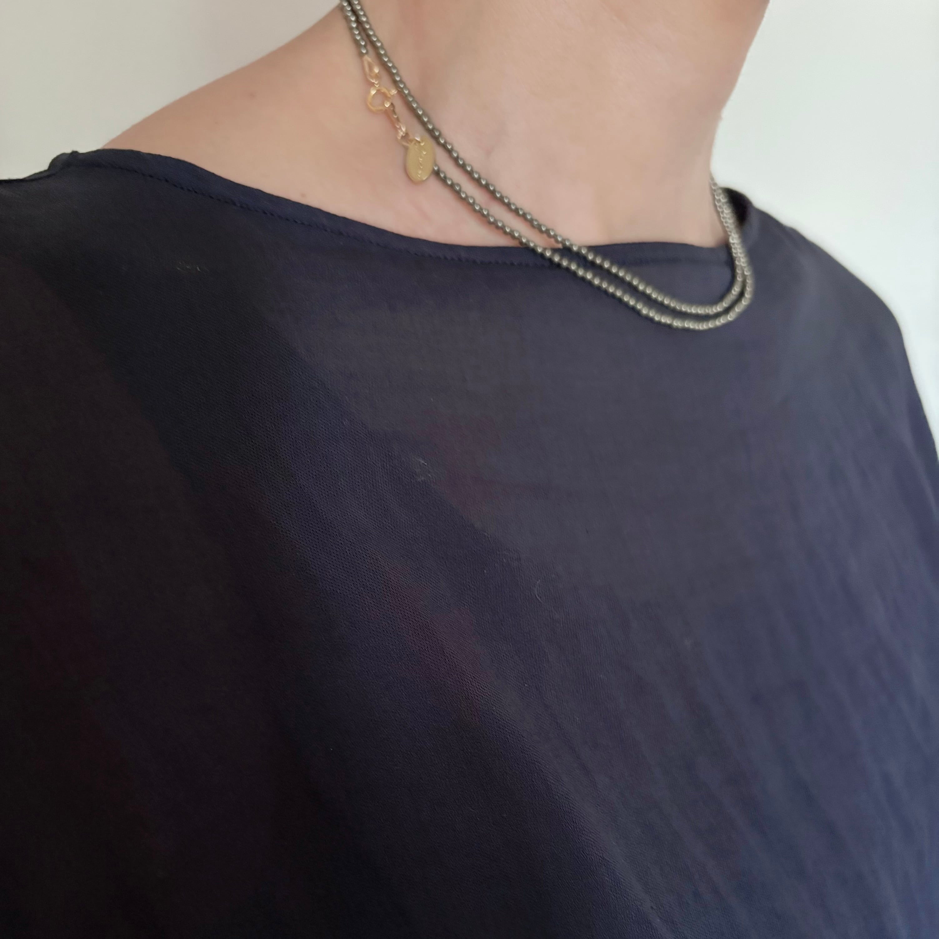 約77cmの長さを活かしたロングネックレスは、2連のスタイルにアレンジ可能で、2WAYで楽しめます。