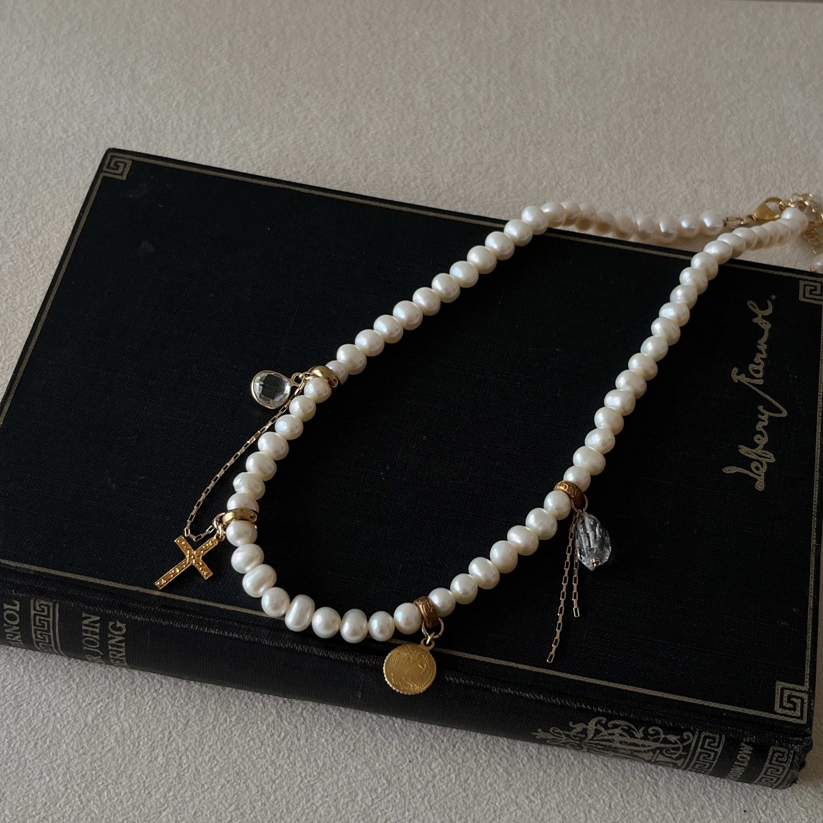 素材: K14GF・淡水パール・クォーツ・真鍮・ステンレス