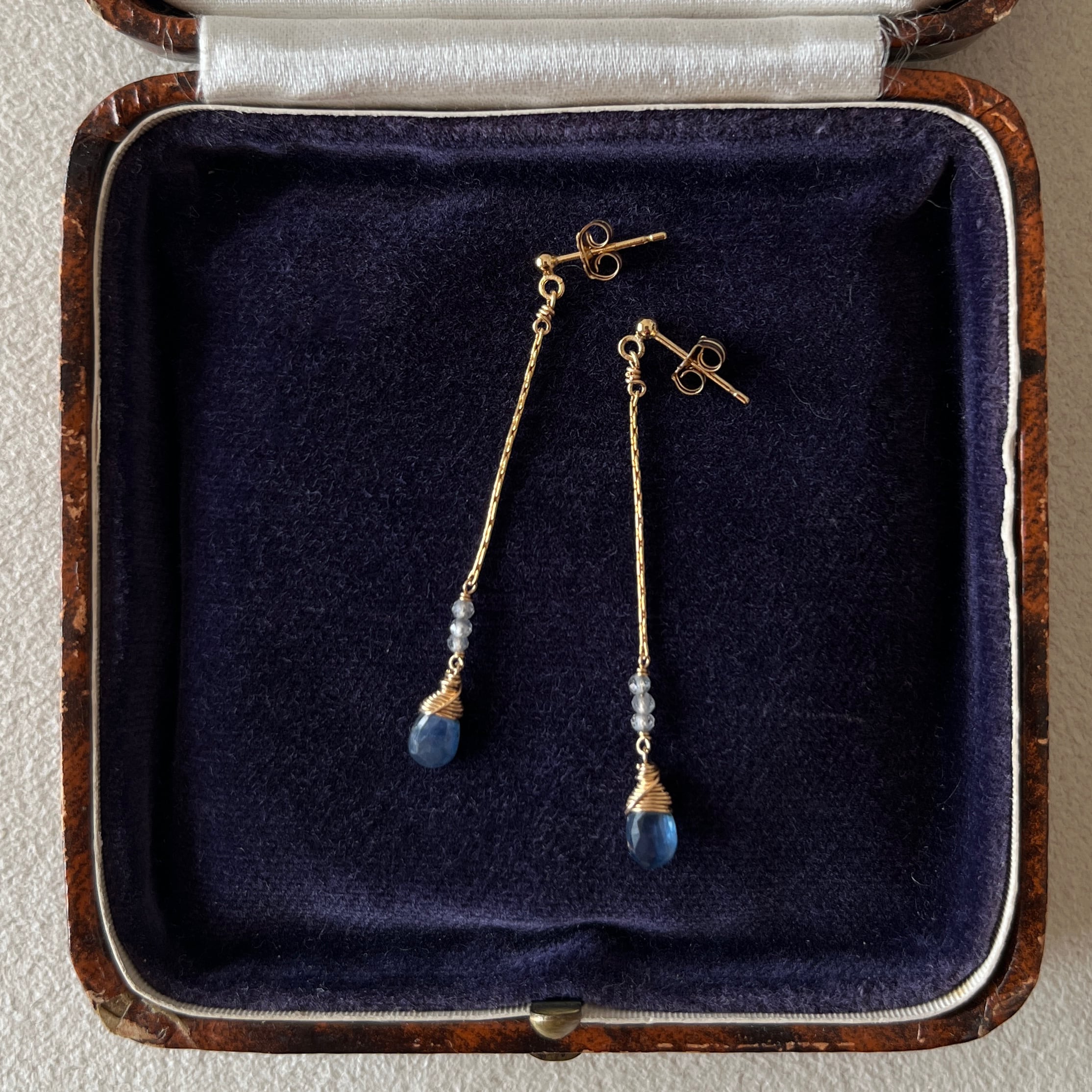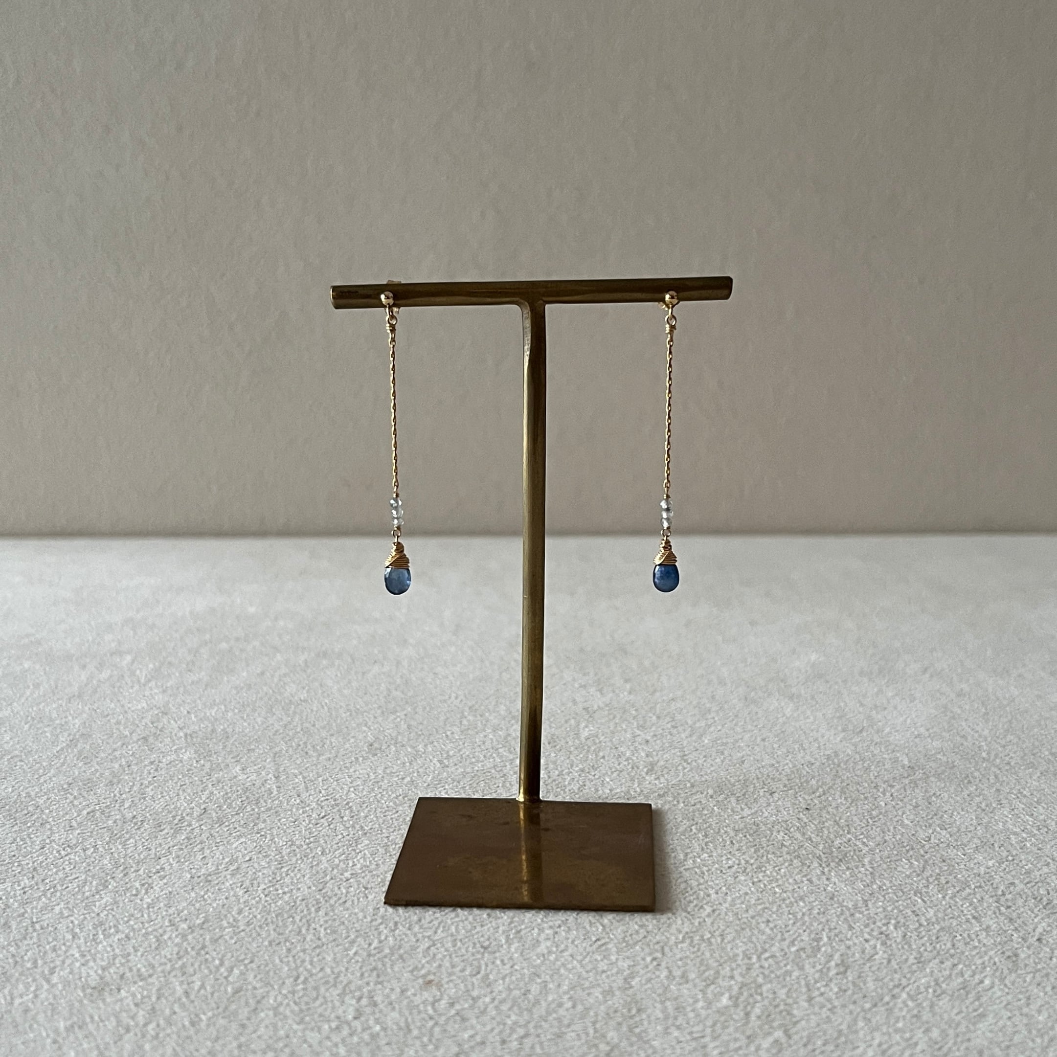 ミルキーブルーのサファイアと小粒の天然石クォーツを組み合わせ、シンプルながらも華やかな印象を与えるデザインに仕上げました。