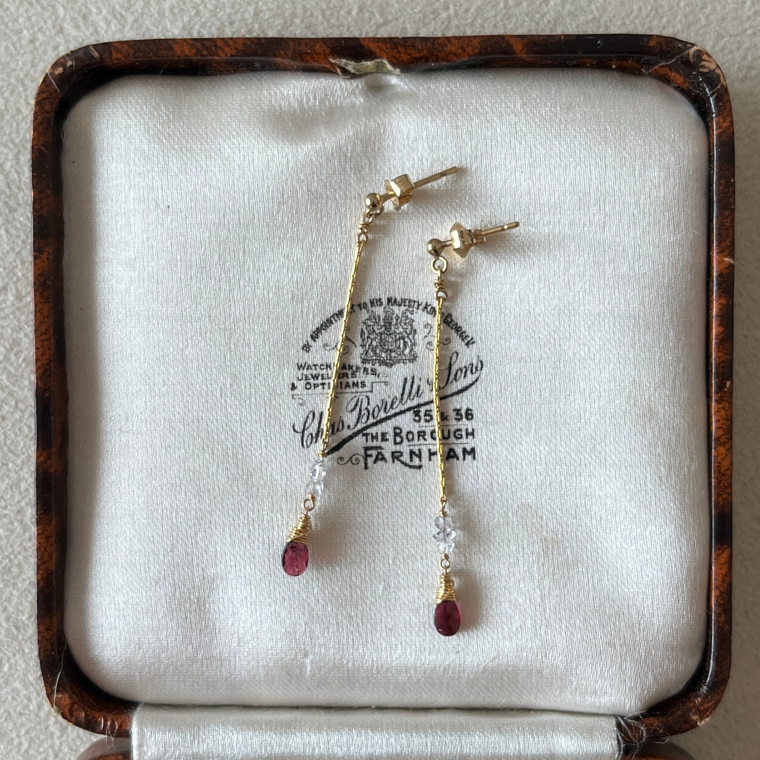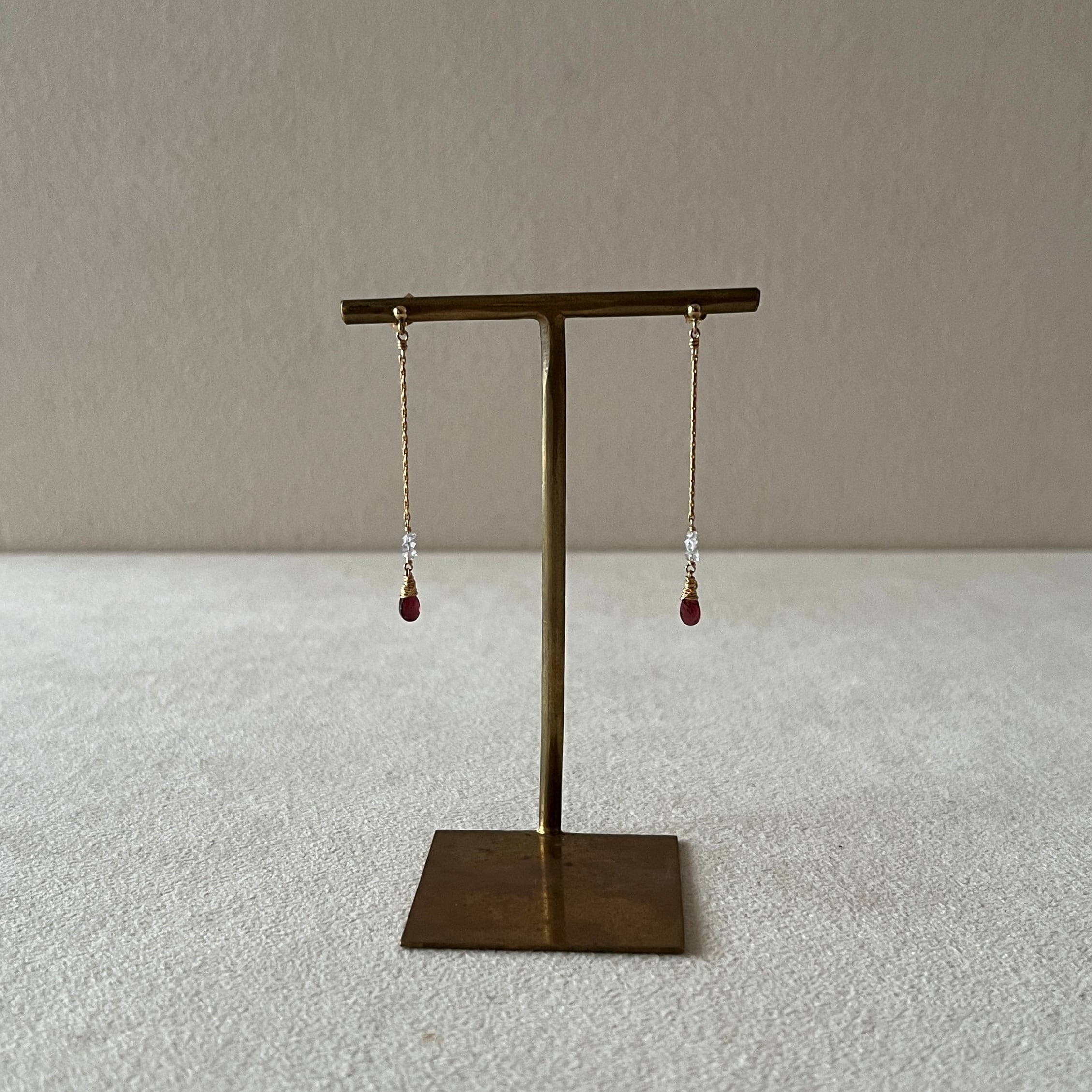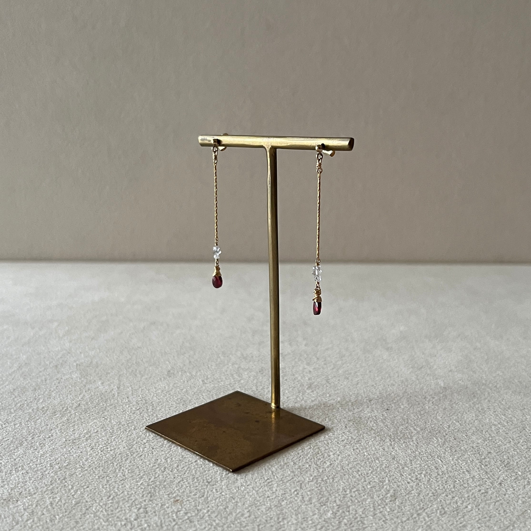 深いレッドのガーネットと小粒のクォーツを組み合わせ、シンプルながらも華やかな印象を与えるデザインに仕上げました。