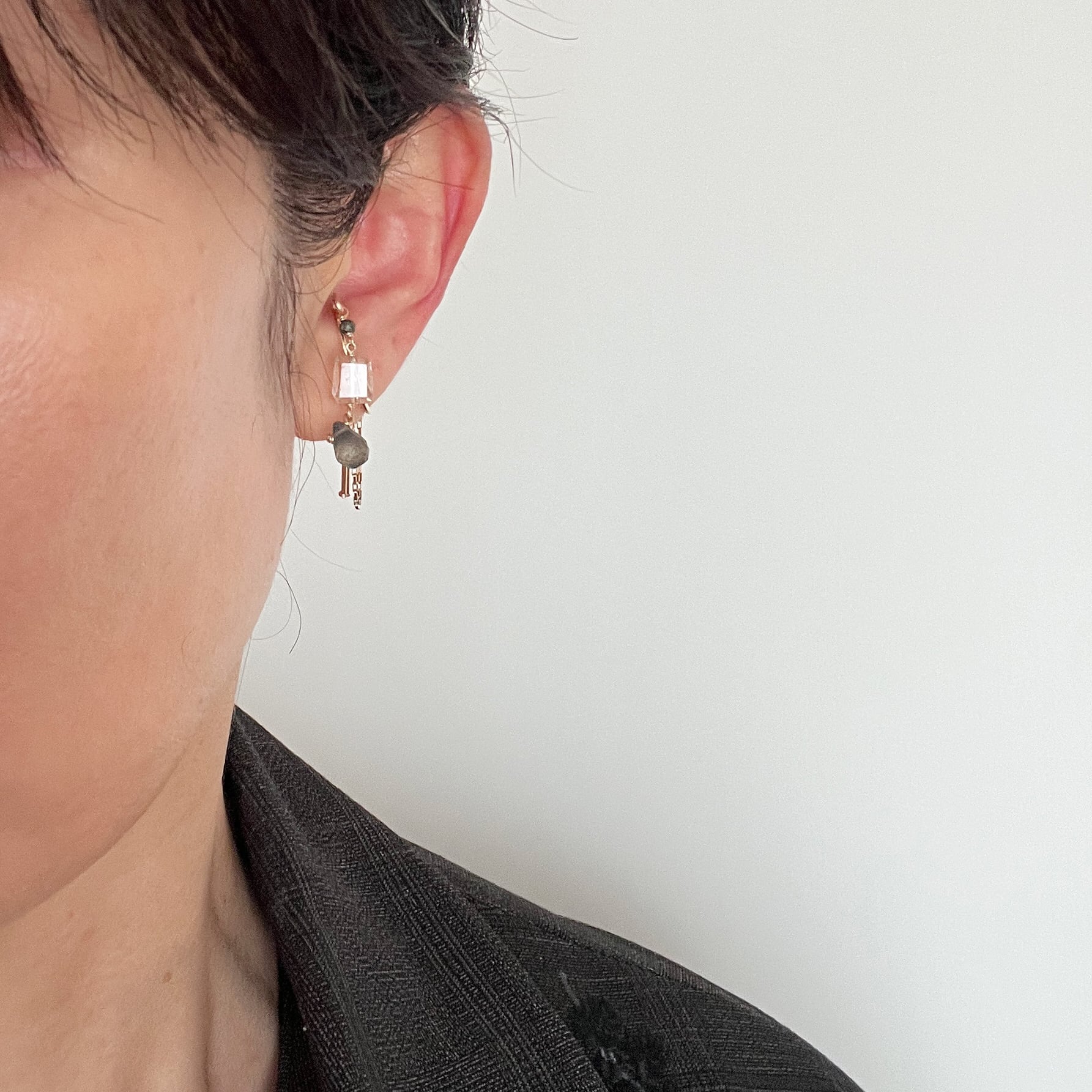淡いシャンパンカラーのトパーズとラブラドライトが絶妙に組み合わさり耳元を優しく彩ります。