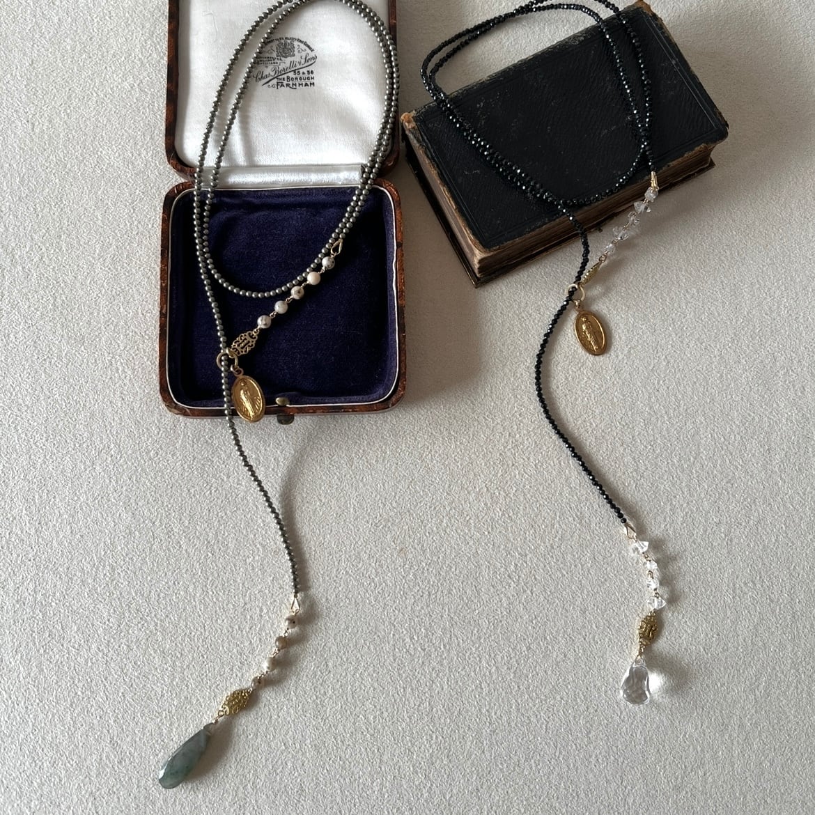 当店ではインクルージョン・クラックが多いと判断した天然石は使用しておりませんが、天然石の種類によっては、もともとそれらを多く含む性質のものもあります。