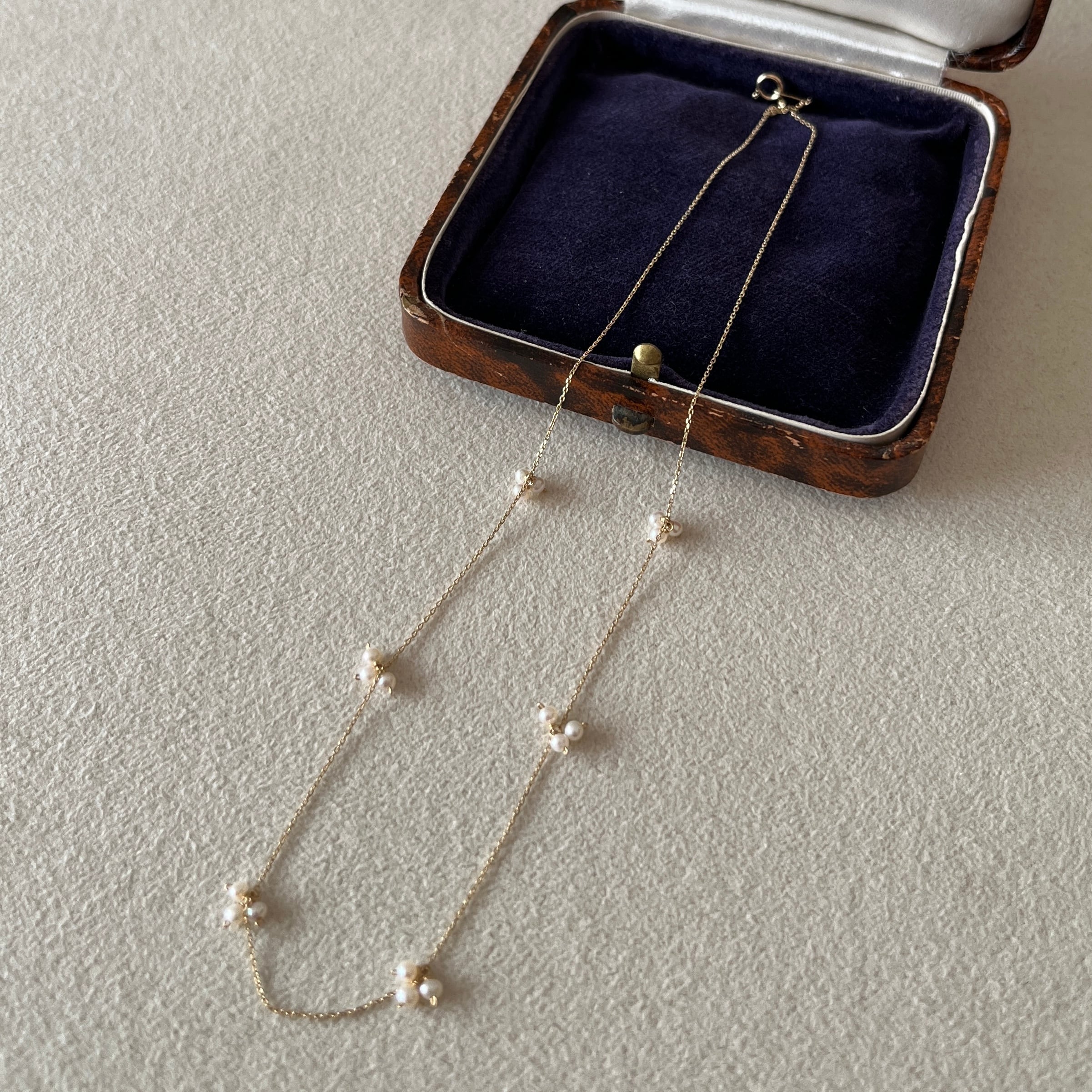 小粒のベビーパールをお花のように散りばめ、華奢でありながら華やかさを兼ね備えたデザインです。