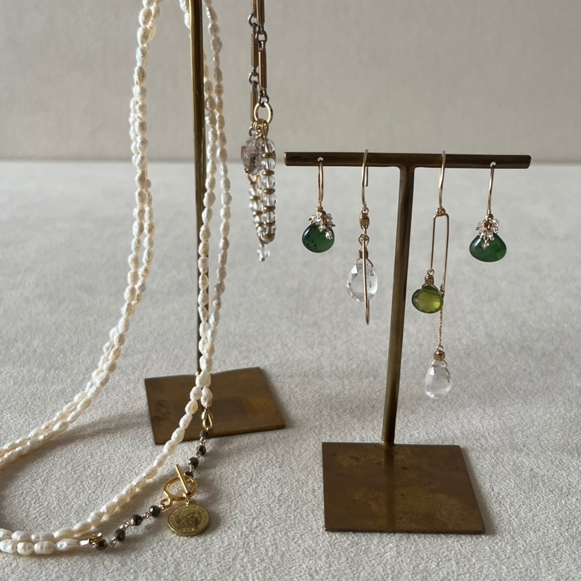 素材: K14GF(フープ型のイヤリング金具はステンレスです)・アイドクレース・クォーツ