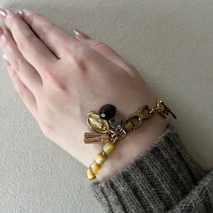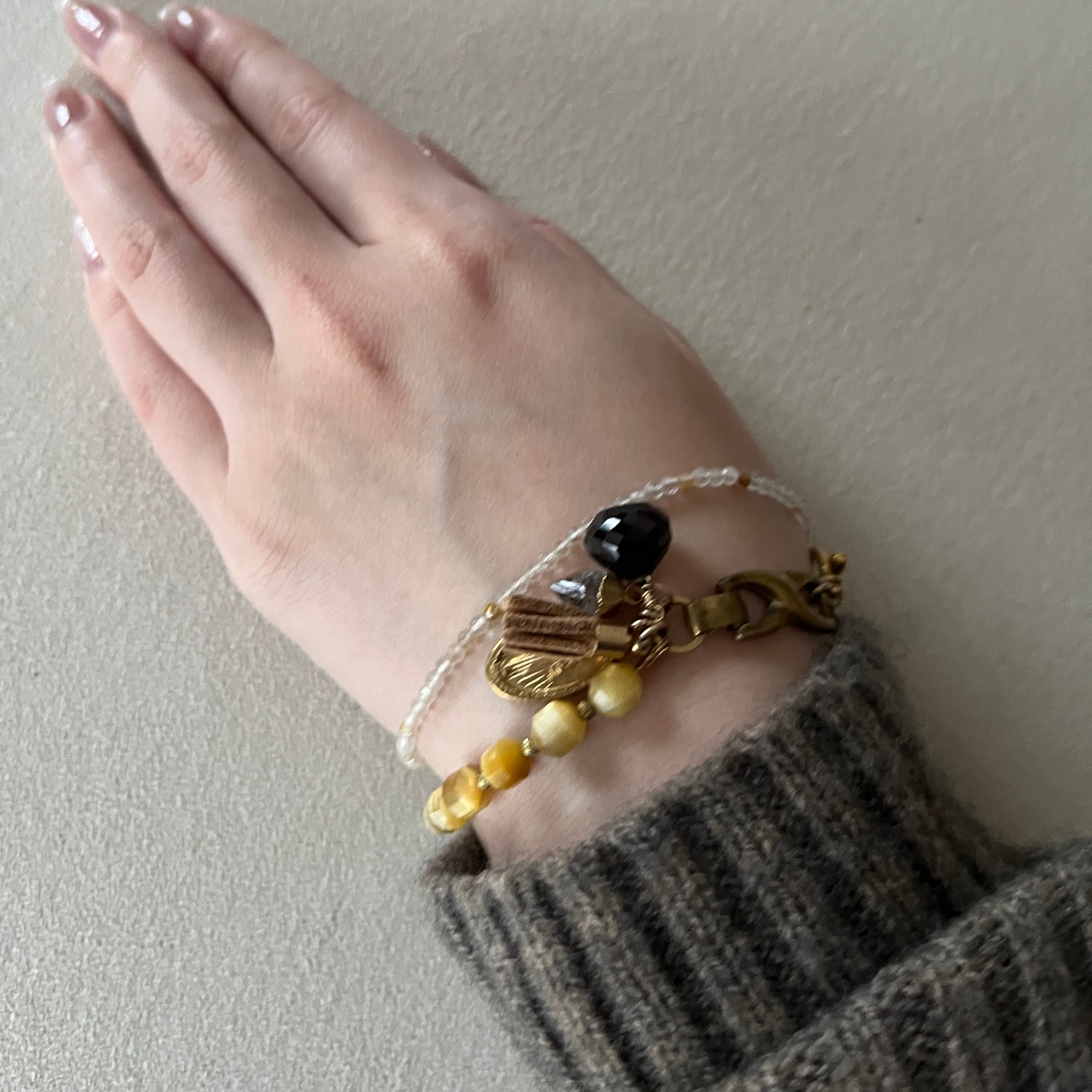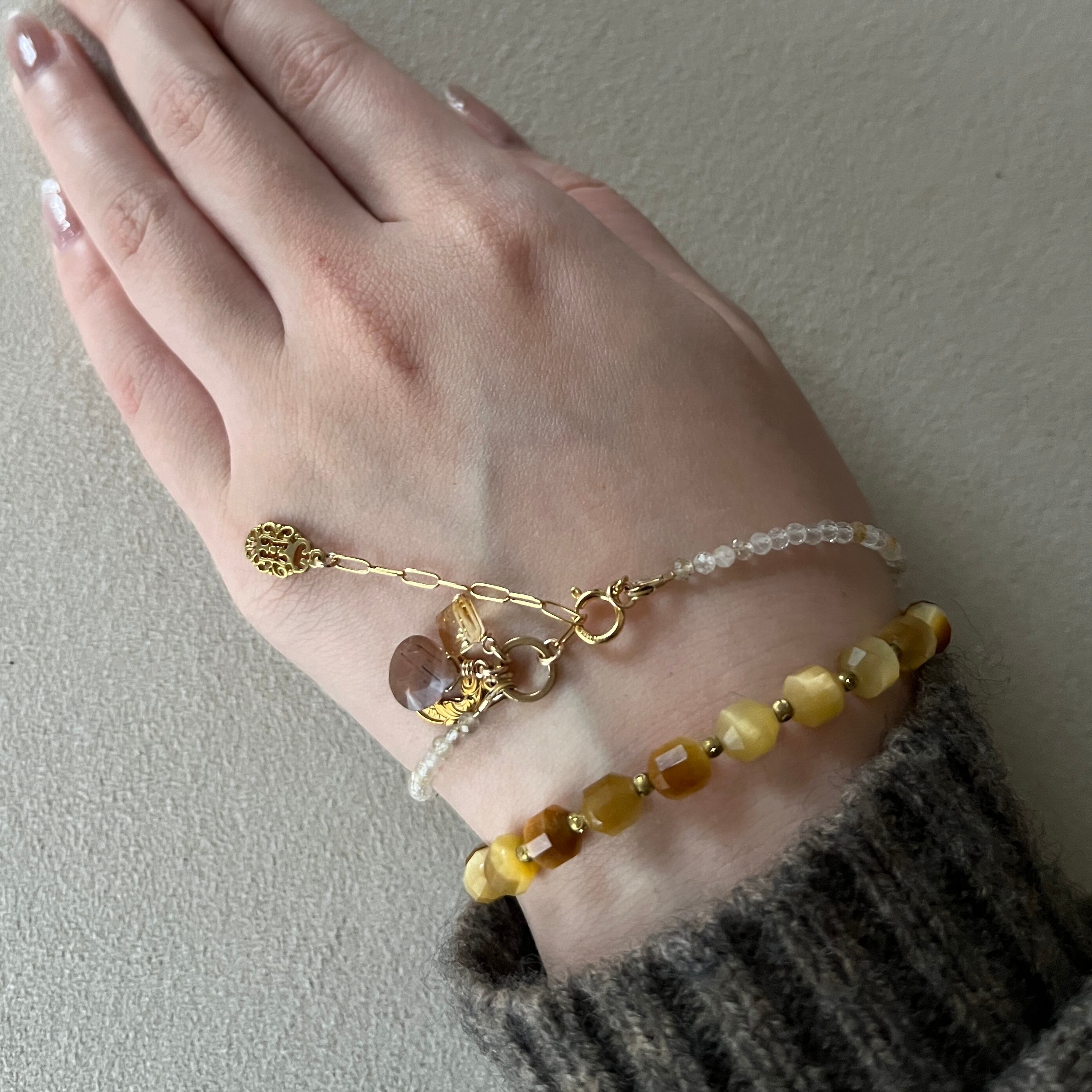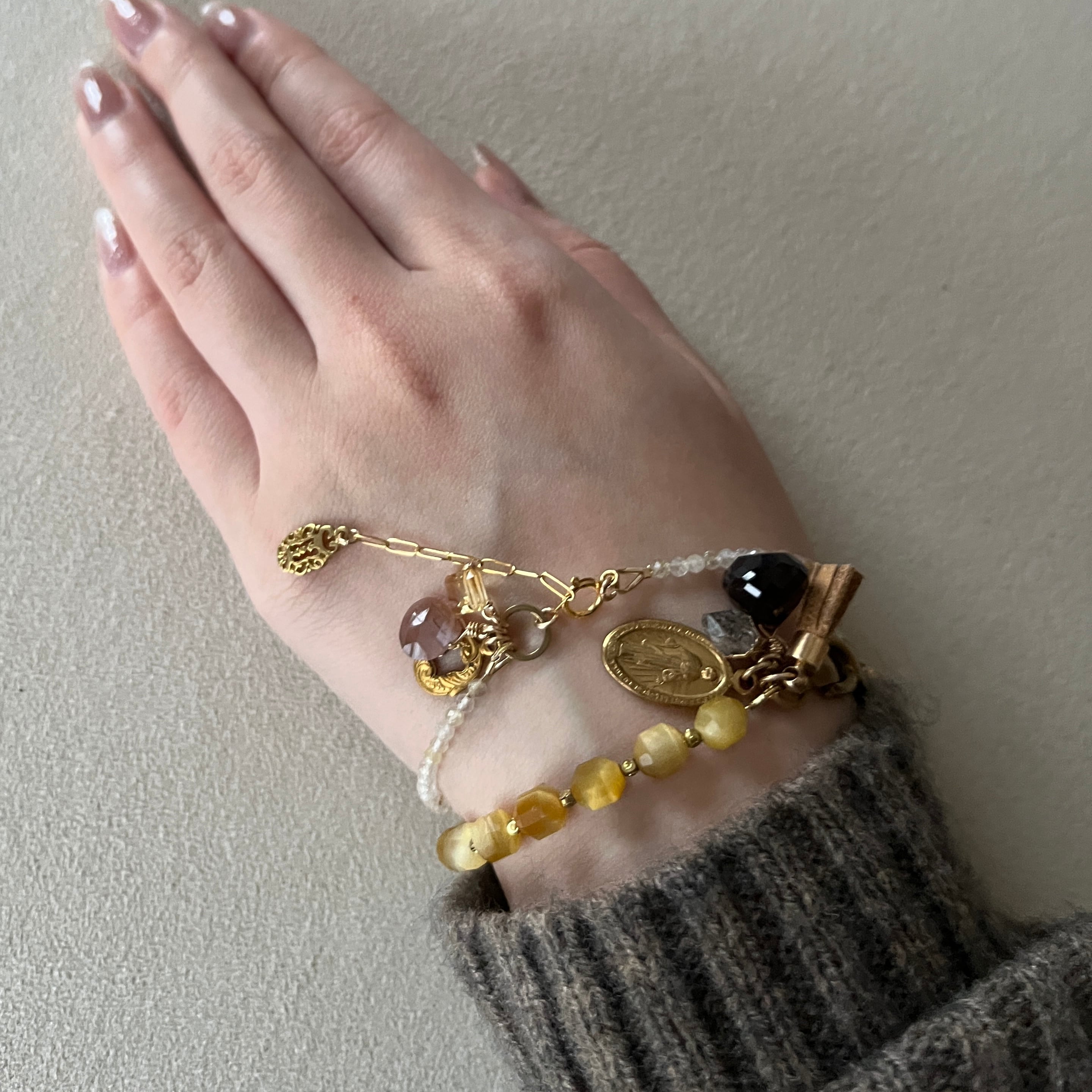素材: タイガーアイ・スモーキークォーツ・クォーツ・ヴィンテージパーツ・真鍮