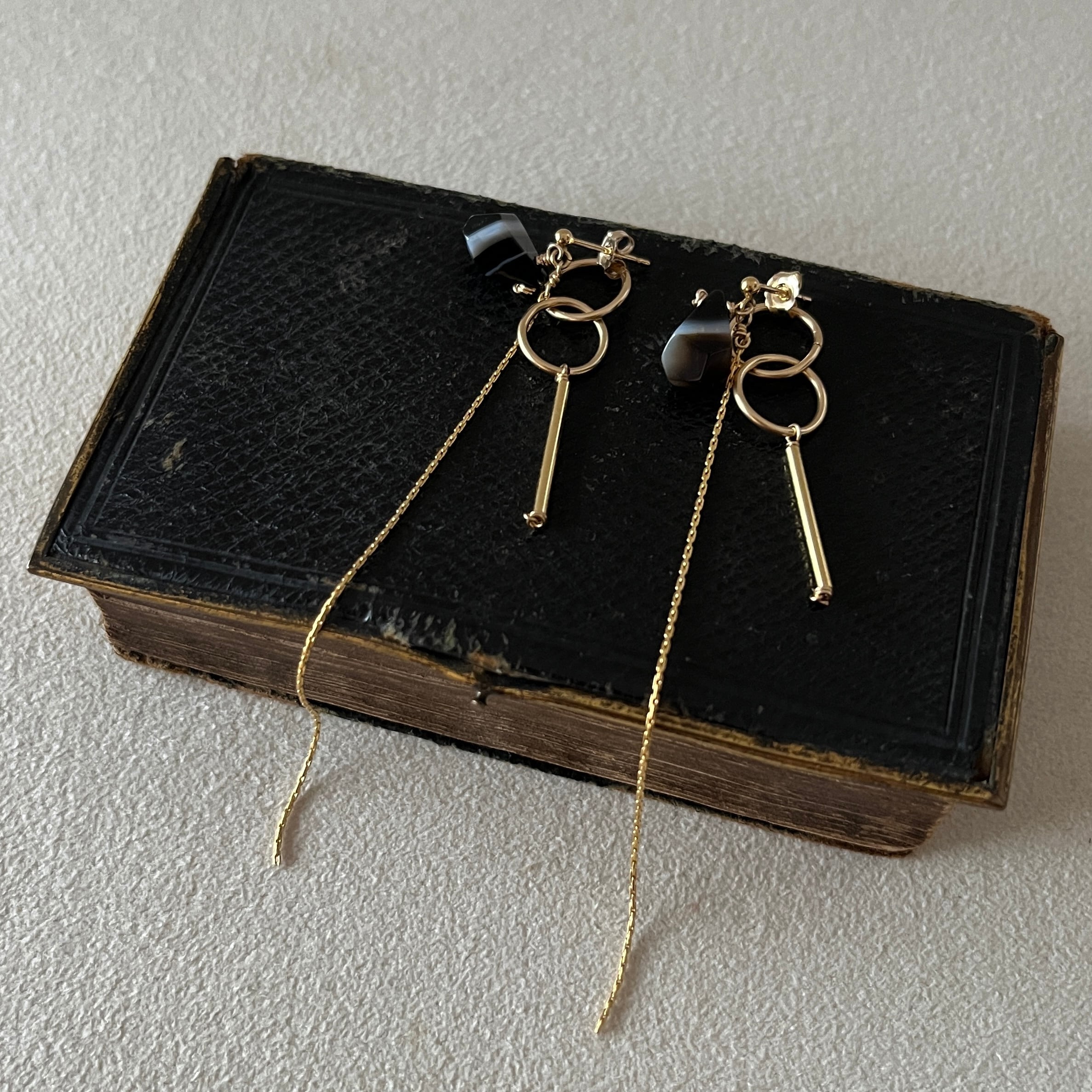 縞模様の美しいアゲートを使ったチャームキャッチのピアス。
