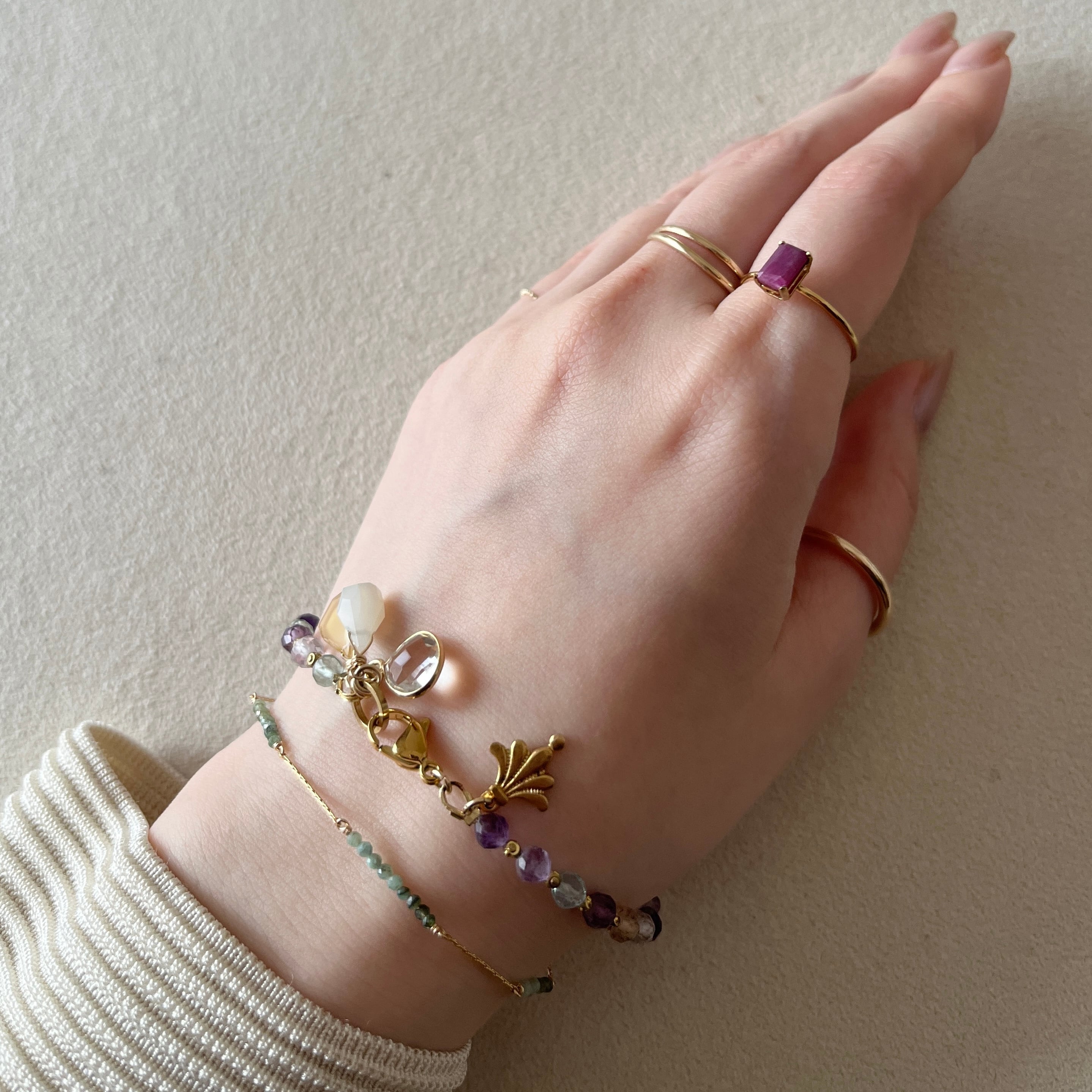 素材: フローライト・オニキス・ムーンストーン・クォーツ・14KGF・真鍮・ステンレス