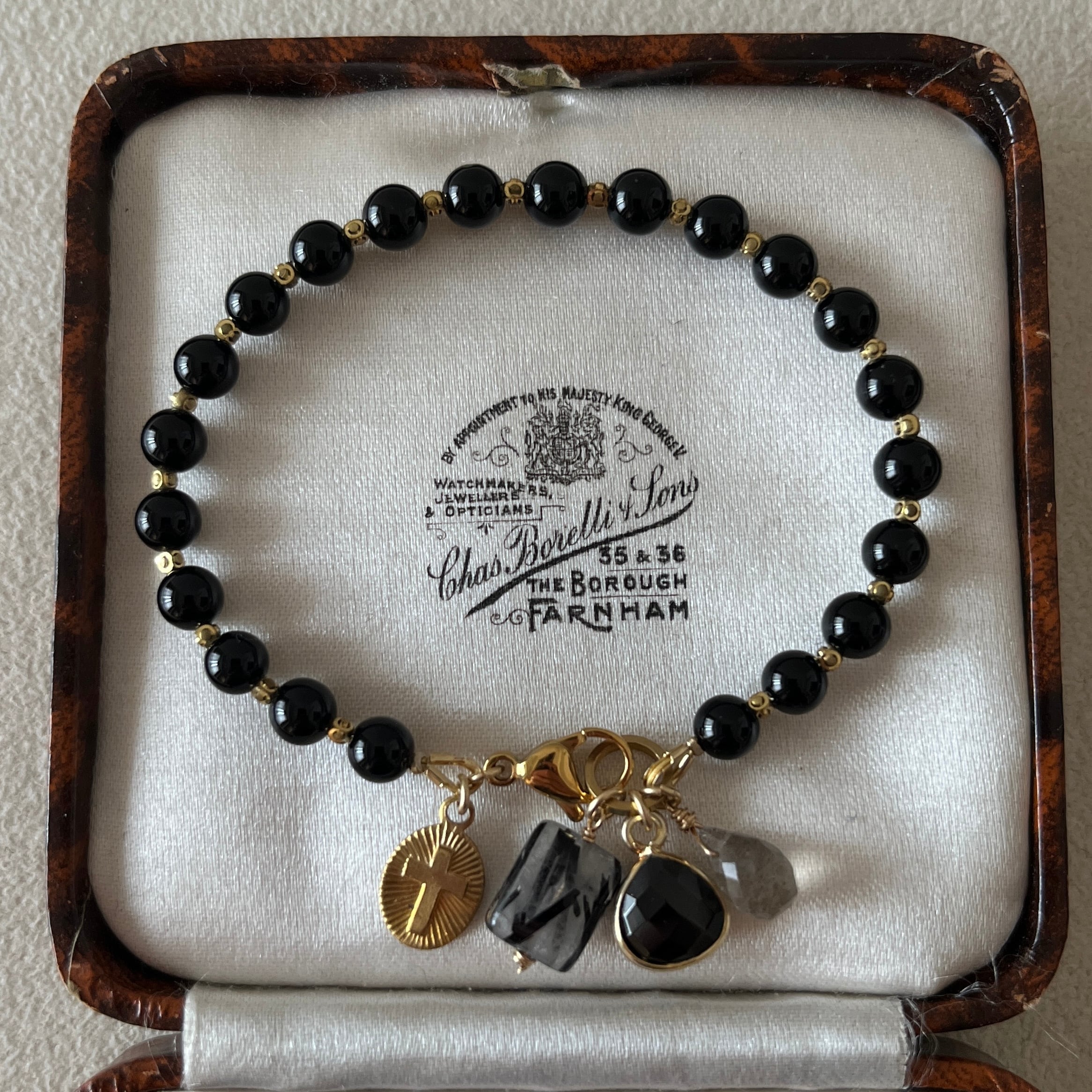 艶の美しいオニキスを贅沢に使ったブレスレット。