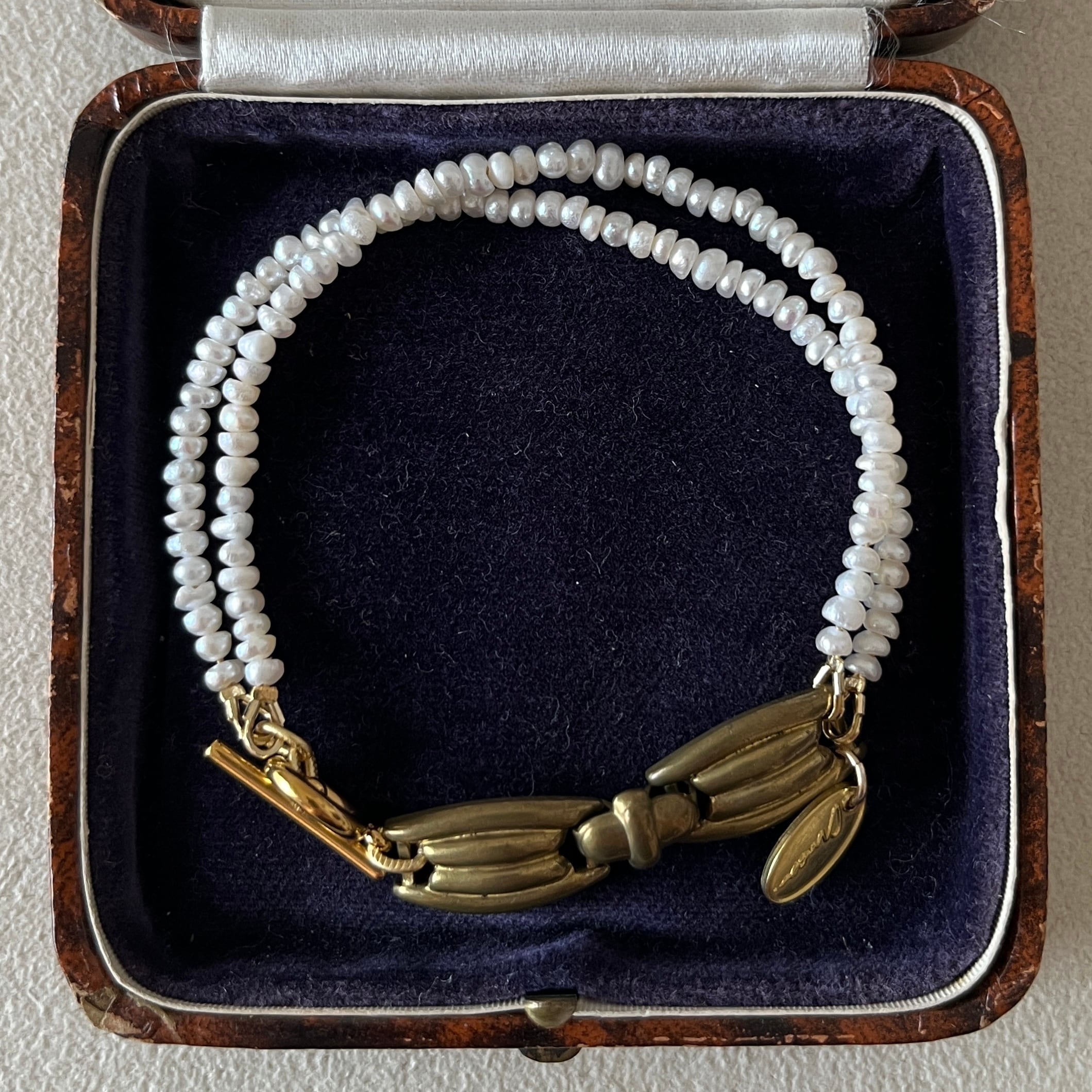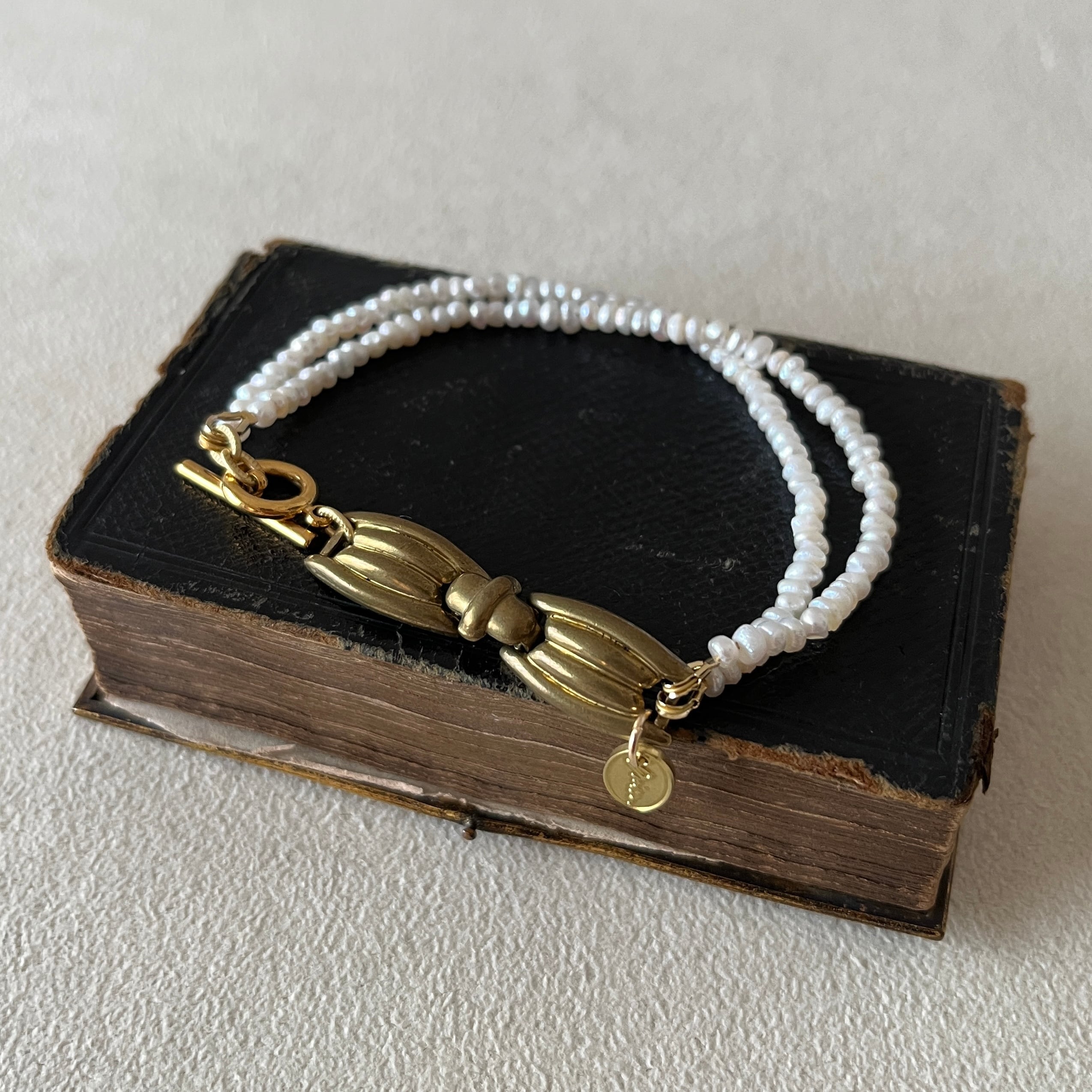 淡水パールとヴィンテージパーツを合わせたアンティーク感のあるブレスレット。