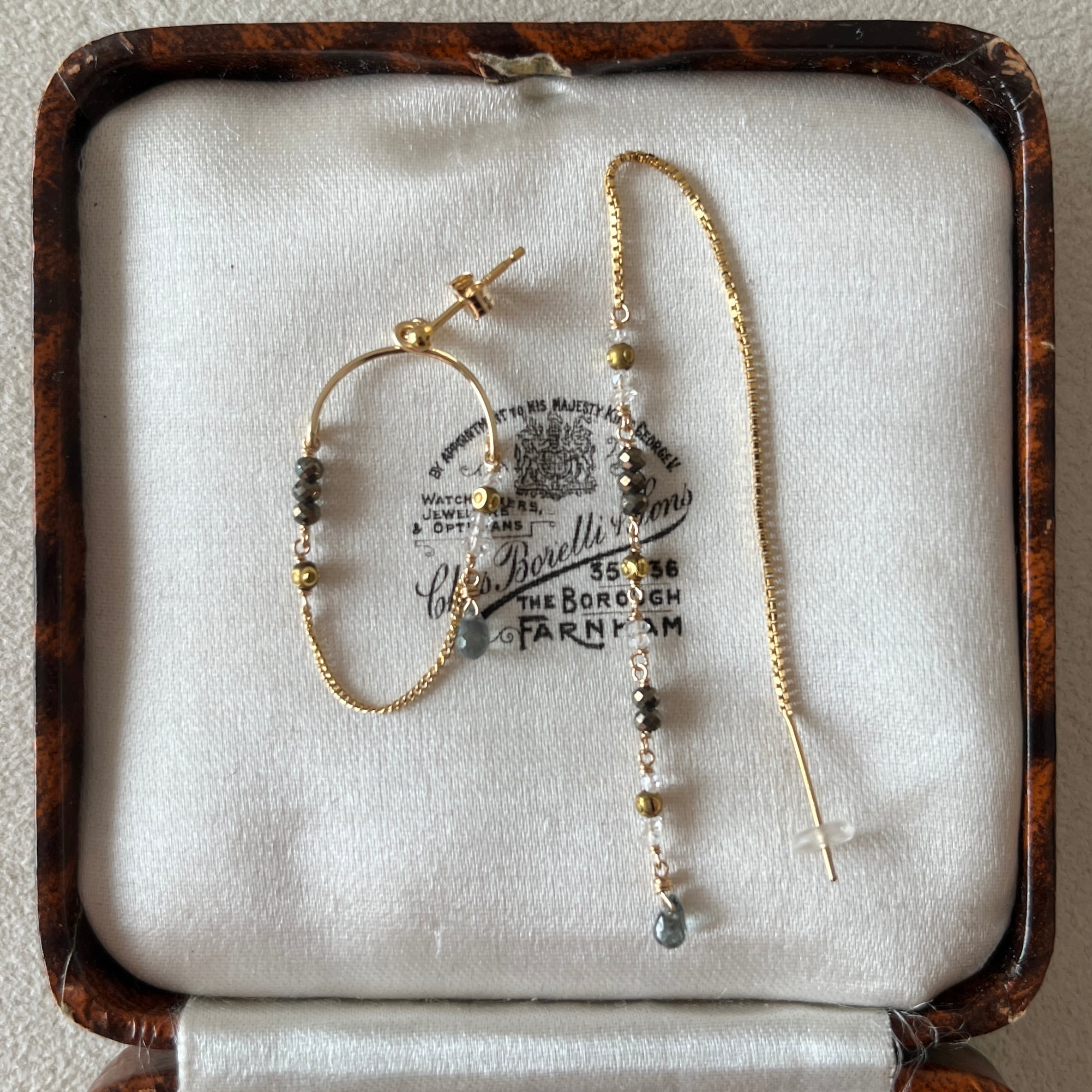 素材: K14GF・パイライト・クォーツ・サファイア・真鍮