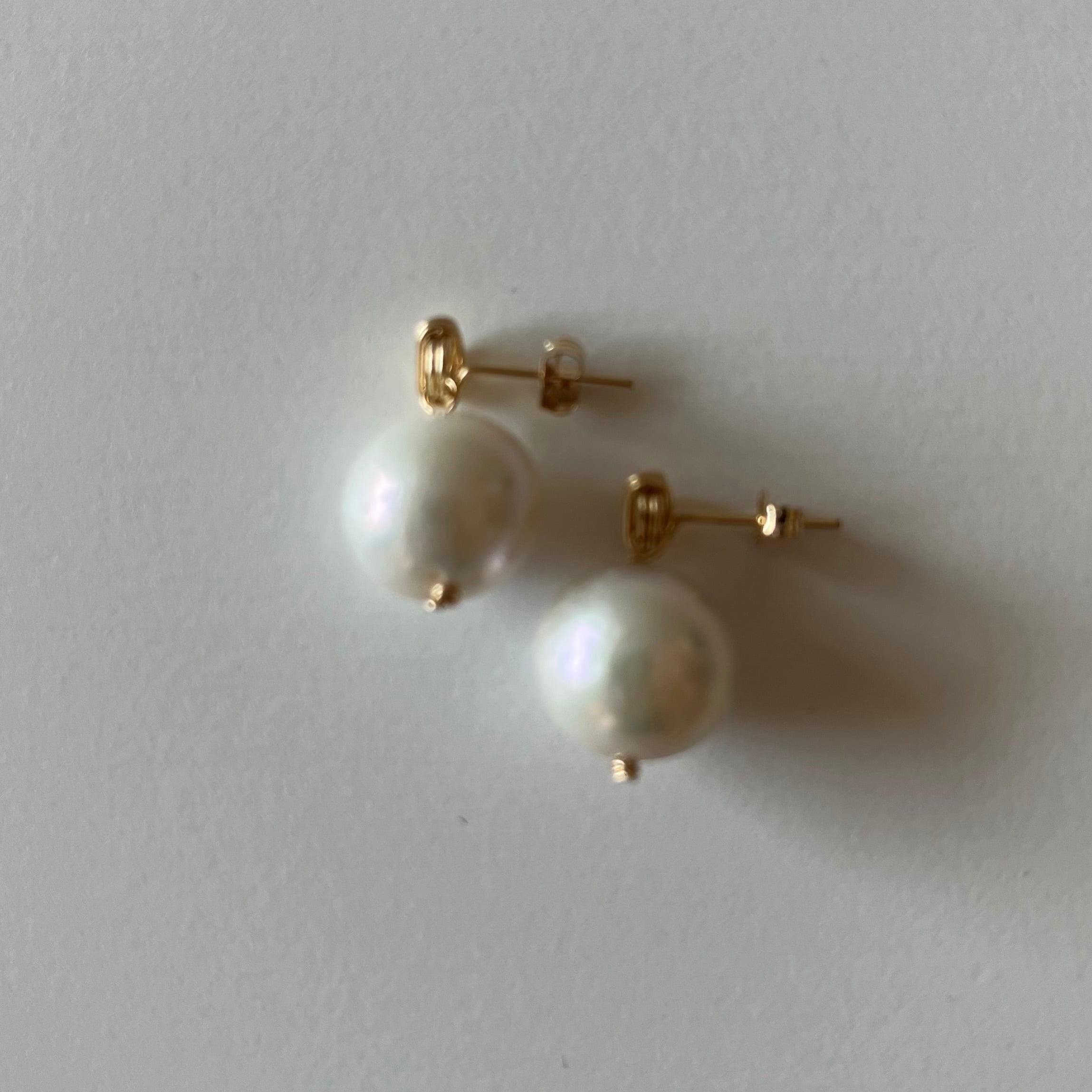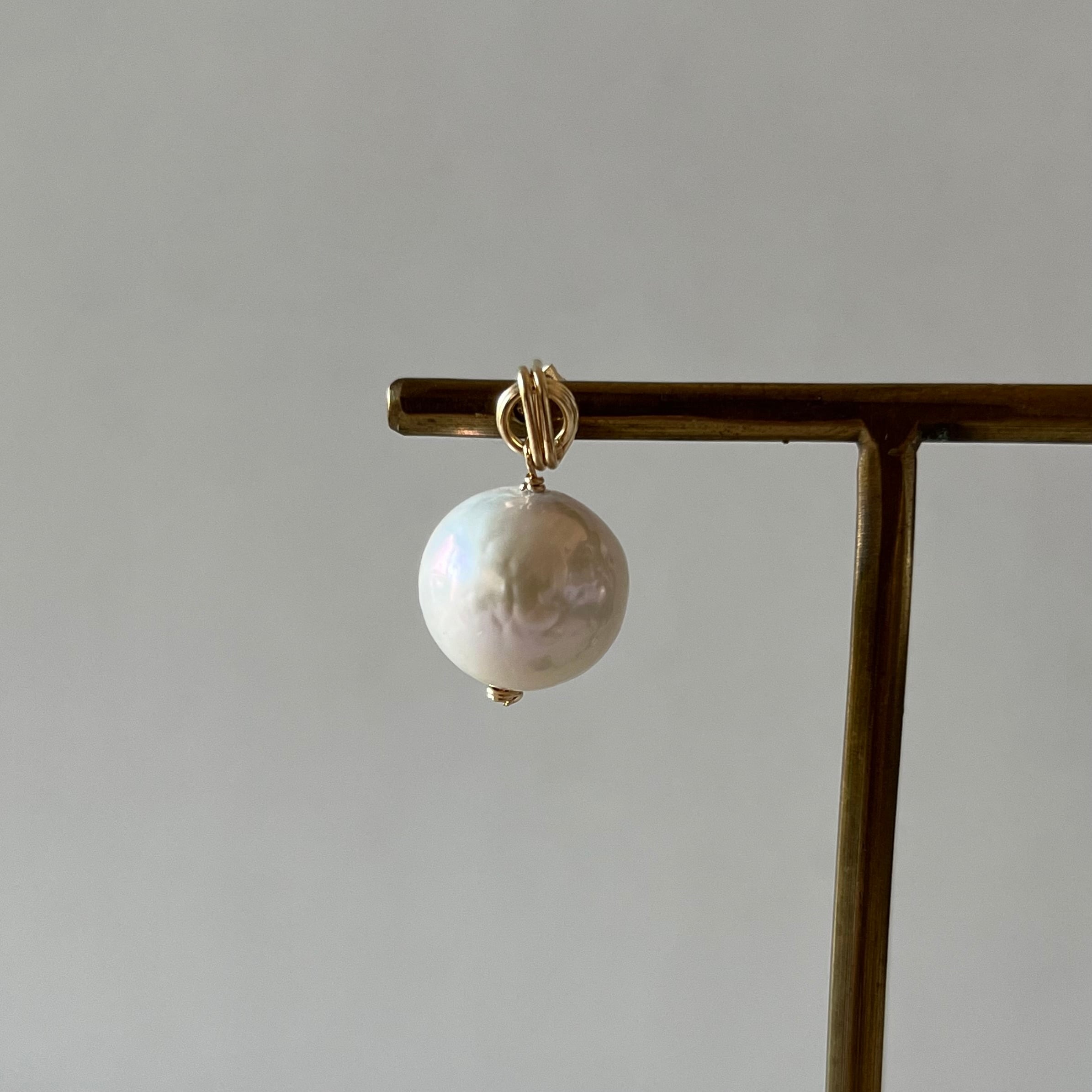 ごろっと可愛い艶消しパールの一粒ピアスをオリジナルのピアス金具で制作しました。